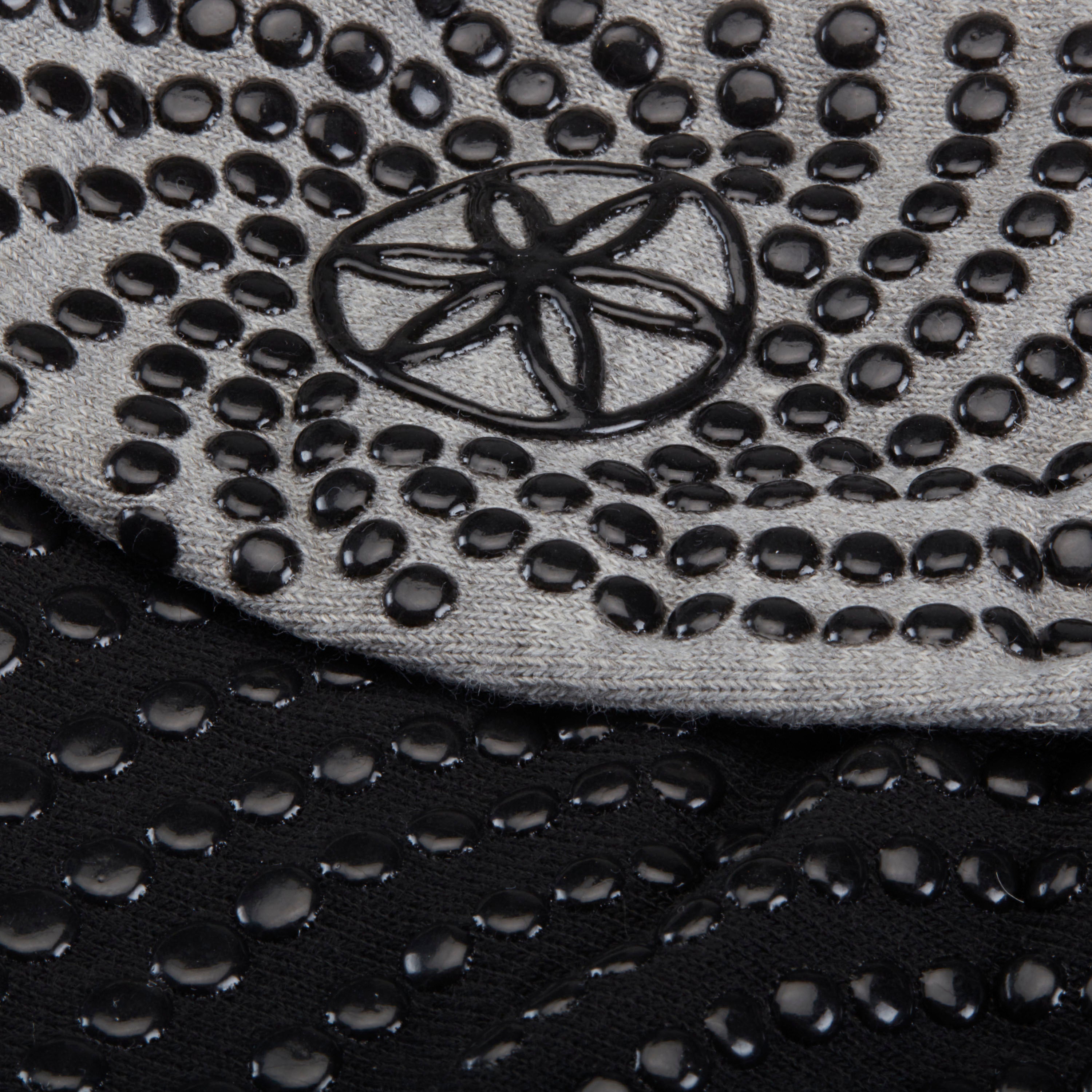 This 2 pack of full-toe grippy socks have a ballet-inspired design that is perfect for yoga, Pilates, barre, and dance. The grips provide a non-slip surface on or off the mat while the criss-cross top straps keep the socks in place during any pose.