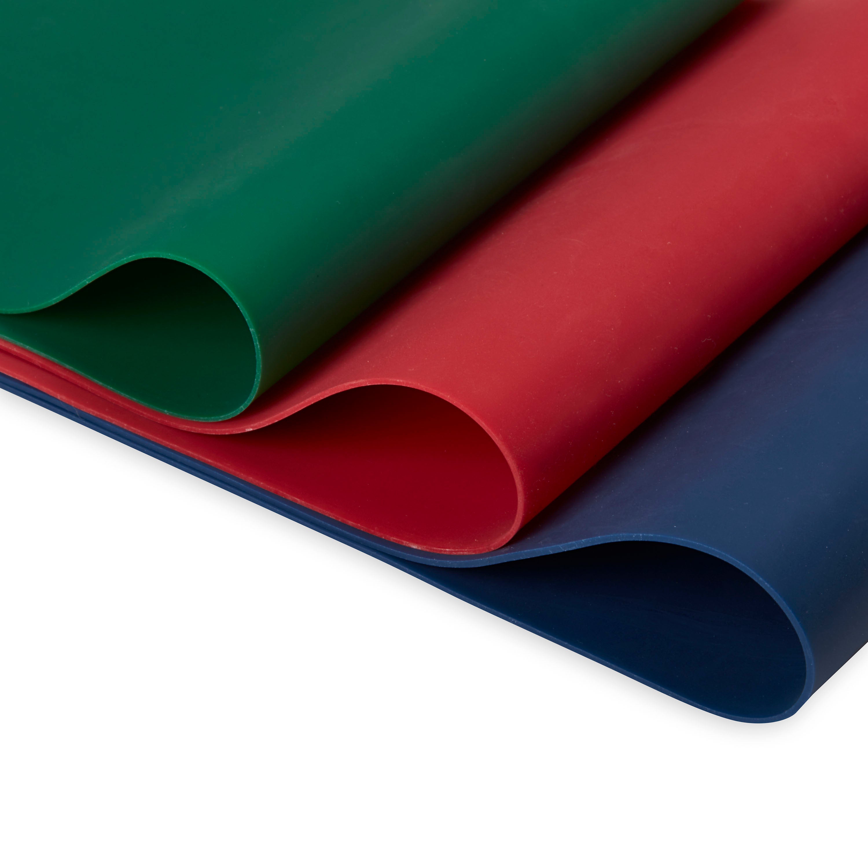 Our resistance bands fit comfortably around the upper or lower legs to help target those stubborn areas. Each band is lightweight for easy packing and training on-the-go. Our company is proud to say we use the highest quality natural rubber for all bands. They come in 3 color-coded resistances: light (green), medium (red), and heavy (blue).